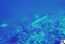 Vasárnap mindkét délelőttin volt tigris, de pl. hétfőn már nem. Én pörölyt nem láttam, de láttam a tigris előtt lent egy kisebb feketefoltú szirtit, és fent longimanust (néha többet is) mindig. Talán a (majdnem) telihold miatt?