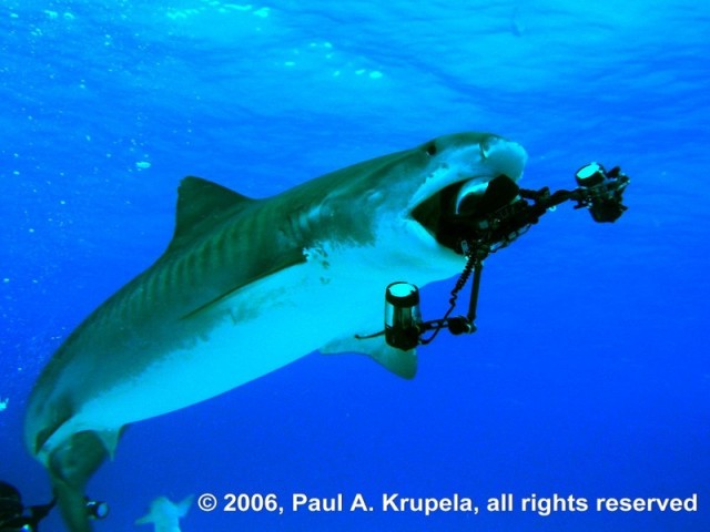 de egy dél-afrikai operátor mesélte nekem, hogy a zajokra különösen érzékenyen reagáló bikacápák a víz alá vitt műanyag flakon nyomogatásától teljesen begőzöltek, olyan szinten, hogy a kollégának komoly halálfélelme volt. | ||