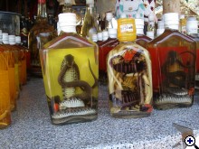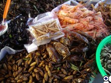 ami az egzotikumot illeti, az utcai kifőzdék, a piacok, a helyiek által látogatot éttermek elég izgi kínálattal várnak. Bangkok utcáin pedig nem lehet úgy végigsétálni, hogy ne botolnál bele pl. a lenti képen látható ínyencségekbe (a bogarakra gondolok) a felturbózott pia inkább északon megy, laoszi hatás szvsz. (a fotó ott készült) ebből ittam, mert azt mondták, kimondottan jót tesz a férfiasságnak:) ööö, még élünk | ||