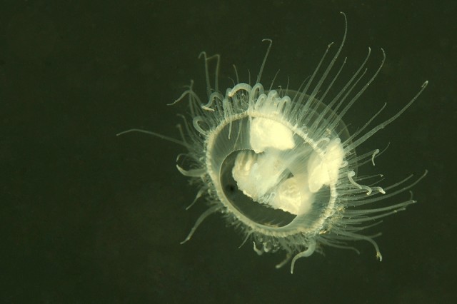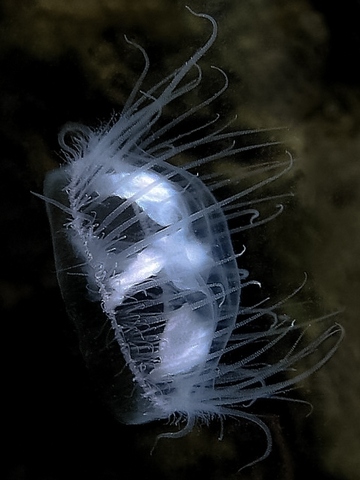 Jaja, én is ecséden láttam édesvizi medúzát, természetesen a kis kompaktom képtelen volt fókuszálni rá, így értelmes képem sincs. Ez lett.