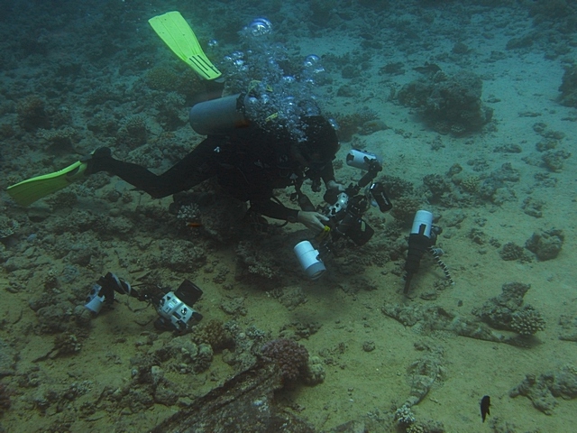 Nekem pl. még mindig meglepő, hogy egy profi fotóhoz ennyi készülődés kell. Megkérdezhetem azt, hogy ezt technikailag hogy néz ki? A merülés elején az egyik fotós odamegy a krokihoz, beállítja a lámpáit, majd sorra jönnek a fotósok, kicsit állítgatnak a lámpán klikkelnek párat, majd jön a következő és így tovább az utolsó ember pedig elhozza lámpákat? Ez kb. mennyi időt vesz igénybe (kroki szempontjából)? Ez a - feltehetően hosszadalmas procedúra - nem túl zavaró az élőlényeknek (jelen esetben a krokinak)?