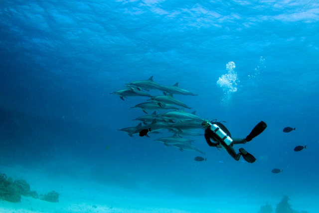 de esküszöm, majd legközelebb, amikor ismét delfinekkel merülök, felhívom a b. figyelmüket, hogy nagyon rossz pozicióban vannak megkérem, hogy álljanak szépen össze, jöjjenek felém és közelebb és várják már meg, míg én alájuk süllyedek, a búvár modell pedig az aranymetszésbe helyezkedik mögöttük az lesz ám a kép, kapásból :) | ||