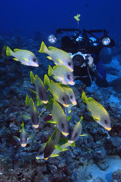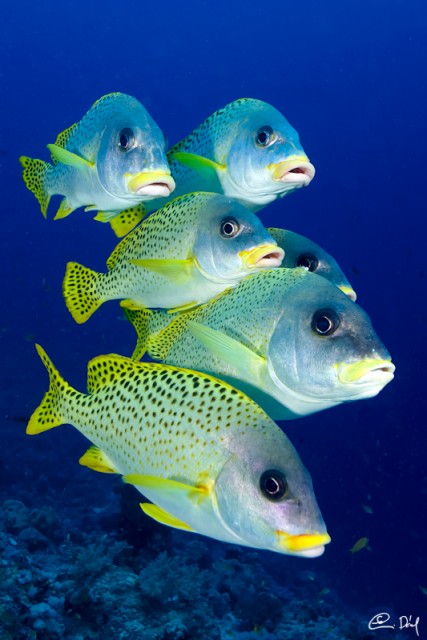 Szépek a színek, de talán jobb lett volna tágabb vágásban, ha a korallkupac látszik ívben, és úgy rajta a halak.akik kicsit most it összevissza vannak. Pedig ezeknél van egy trükk, hogy egyben legyenek (igaz, inkább videós trükk, de fotóra is jó, ha gyors a géped): mikor úszkálnak, hirtelen megrebbented őket, és akkor összebújnak, majd együtt elkezdenek előjönni. Ha azt megcsíped, klassz fotó lehet belőle. | ||