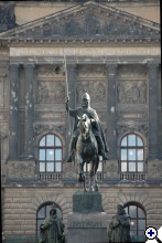 Szerintem, ő I. Vencel cseh fejedelem, és a szobor Prágában található.