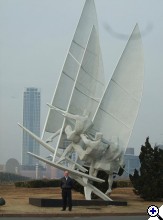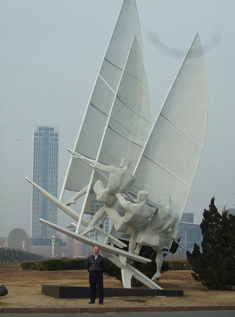Valami szocialista művészi alkotás lehet ez. A szocilaista realizmust érzem a kép láttán. A kérdés, hogy hol vannak olyan nagy hullámok,hogy érdemes legyen a szörfösöknek szobrot állítani. Főleg ilyen csoportos Laokon félét.