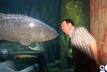 Spanyolországban a Medes szigeteknél egy kb. ekkora volt - állítólag rendszeresen ott van, talán be is van etetve. Minket tisztes távolságból figyelt, de egy haver rosszabbul járt. A mellényére a biztonsági szelep húzójára egy golflabdát szerelt, hogy könnyebben megtalálja. A sügér ezt nézte ki magának, odajött és egyszerüen leharapta.