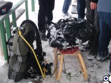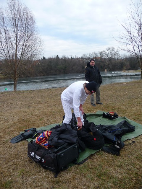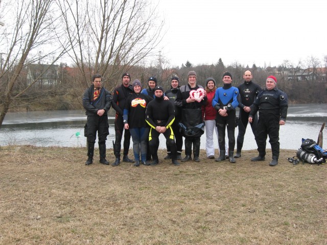 Február 13án volt a Valcsi-napcsi merülés, tekintettel arra, hogy ma munkanap van. Íme a lelkes csapat, akik merültek. A víz 3 fokos volt és szükség volt jégtörő csónakosokra is, hogy a hártyaszerű jeget áttörjék. A tó egyik részén viszont szép, vastag jég van, ami lehetőséget adott a jég alatti merülésre is. ![]() és a csónakos jégtörők csapata: ![]() és Luci, aki nem hiányozhatott:-) ![]() |