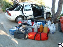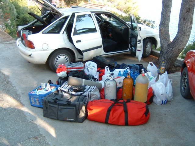 "Klasszikus" búvárautó (?) : (FORD ESCORT) 3 teljes búvár felszerelés (palack, ólomöv is) 2 heti élelem 1 vezető 2 utas Pontosan ma sem értjük, hogyan tömtük bele ezt a rengeteg cuccot, de belefért.. Indulás : Budapest Végcél : Korcula, Prizba Távolság: 940 km Átlagfogyasztás: 7,2 l/100 km Nem autópályán mentünk, 80-100 km/h sebességgel (rendőrtől fűggően) Igaz, 6 éve volt, de a "bádogszekér" - felújitva - , azóta is rója az utakat |