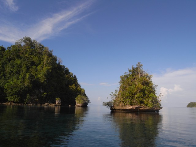 Helyzet az, hogy elég nagy ár-apály van arra felé és a partot a elvinné a fenébe házastól mindenestől. Szóval, amit lebetonozva látsz az a maximális dagály szint. Úgy sacc per kábé. Ja és a sziget is meredek mészköves szóval a kis resortocska házai félig természetesen barlangokba vannak. A helyi terep viszonyok szemléltetéseként legyen itt a fenti kép. A kis szigetecske apálykor szárazlábbal megközelíthető. Egyébként a macsek képén jól látszik a homokos part is, ami a nap 75%-ban rendelkezésre áll. A maradék részben vízalatt van. :) Ja és ez volt a kilátás egy része a szobánkból. :) |