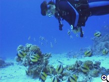 Úgy igazán alaposan megismerni az Omegát már régi vágyam volt. Úgy tippeltem, hogy videózásnál még előnyös is a kicsi, oldalmembrános második lépcső, és úgy fest, nem tévedtem. Csak újonnan szerintem túl drága, ezért vártam addig, amíg használtam nem tudtam hozzájutni a cucchoz. Az én Oceanic komputerem eléggé személyre szabható. Most alapbeállításokkal használom, és szerintem így megengedőbb, mint a Suunto. Elégedett vagyok vele, bár vannak furcsaságai. |