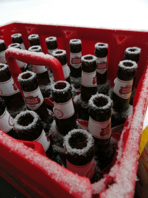 Aki aggodott volna ertunk, annak uzenem hogy Belgiumban is esett a ho, de legalabb a teraszon lehet huteni a Stellat... |