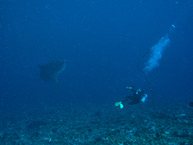 Aztán kiderült, hogy a vonzódás nem csak részemről áll fenn, így még közelebb mehettem. A máskor olyan normális méretűnek látszó pillangó (vagy vitorlás? ezt mindig keverem) halak itt csak a törpék szerepét töltötték be az óriás mellett. Ott még fel sem fogtam, hogy mekkora bődült nagy is ez az állat, csak utólag, a fotókat nézegetve döbbentem rá. Ennél közelebbi képet nem merek mutatni, mert az már izgatás lenne részemről Bunnyval szemben, mivel azt mondtuk neki, hogy nincs jó közeli képünk a moláról :) Mellesleg nem is hazudtunk, mert egyen sem látszik, hogy a kis halak mit esznek ki a bőréből :) |