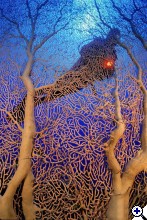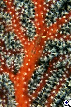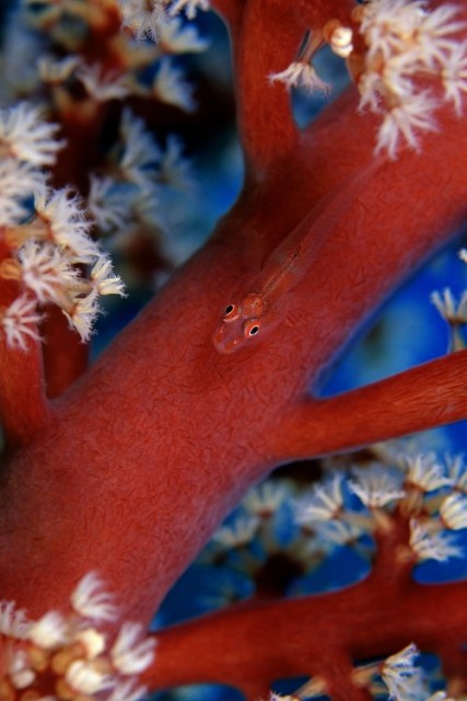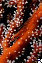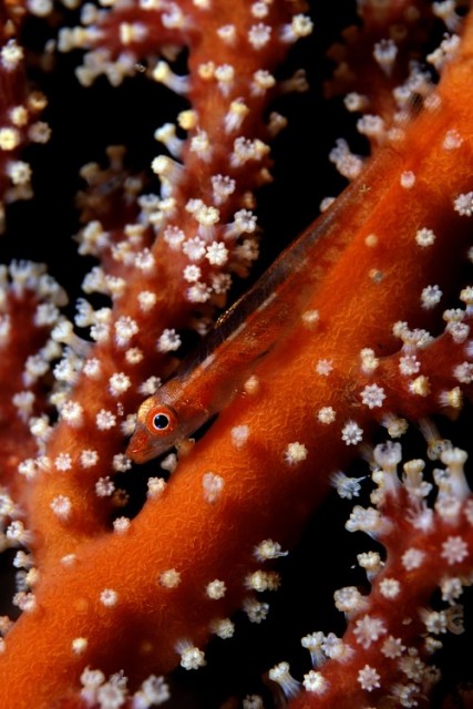Sok minden tetszik ezen a felvételen. Elsősorban az, hogy a polipok nem húzodtak be. Szép részleteket látni ezen a miniatűr kis csikóhalon! És a Zook féle speciális súrló megvilágítás is egyedi hangulatot kölcsönöz a felvételnek!Hogy mitől lenne jobb? Talán ha nem fordulna el egy kicsit és nem lógna bele a gorgoniába,hanem az egy keretet adna neki. |