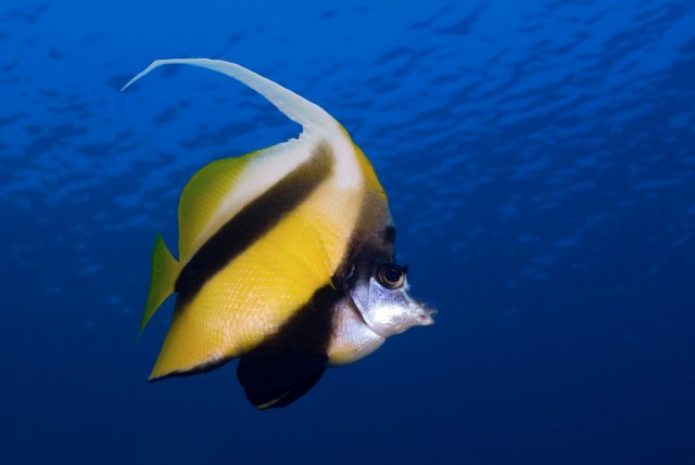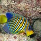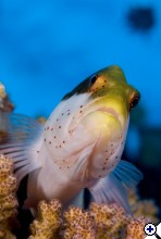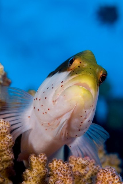 Első próbálkozásnak nem rossz! A fene vigye el,már megint lágyszívű vagyok! :-)Ami tetszik: szép átlós elrendezés, a hal elött több van mit mögötte, nem zavaros a kép. Ami nem: Vágott a hal farka (nem vészes), a két iros hal inkább zavaró-főleg, hogy meg is van vágva a bal alsó, a sziklanagyon világos amin ül a hal, és oldalról picit még mindig felülről fotózott ezért picit statikus a felvétel. Ilyet tudok pl elképzelni erről a halról: Megpróbáltam olyat, ahol szintén van még plusz hal( a folt felül) |