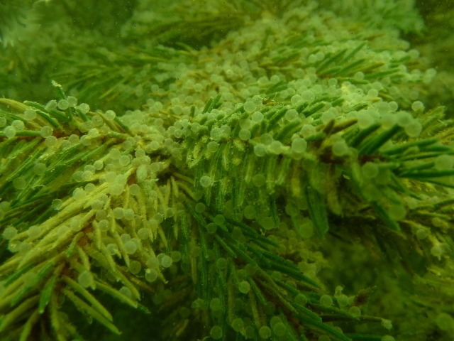 Nem. Segítségképp (sajnos nem nagyon fényképeztem ott) leírom a látványt: ~10m mélyen járunk. Alattunk fehér, gomolygó köd, a fenék meredeken lejt, majdnem tiszta fekete, rajta a képen látható fehér valamik. A ködbe leereszkedve a látótáv gyorsan 0 közelébe csökken, a lámpa fénye lilás lesz, de a 3x3w led sem tud 20-30 centisnél hoszabb fénykévét vetni. A légzőautomatából átható büdös érződik. Felemelkedve azt tapasztaljuk, hogy a rajtunk lévő ólomtárgyak megfeketedtek. Mik azok a fenéken lévő valamik, és melyik vízben vagyunk? |