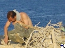 Legutóbbi szafarinkon / még a Nabilán :(( / kimentünk a fogalmamsincsmianeve szigetre, ahol már mindenki járt, ha északi túrán van. Ahmed a merülésvezető elkapargatta a száraz földbe egy ott talált madár csontvázát, illetve ami maradt belőlle. Kis sas fióka lehetett talán. Egész komoly szertartást rögtönzött, szerintem nem nekünk... |