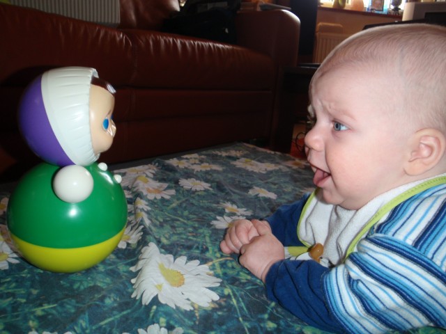 köszi... ha a lyányod szoptatni is tud, remek! ;) Kisdémon ma kapott oltást, így kicsit nyűgösebb ma a kelleténél.. - igazi férfi! |