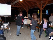 Ja, és nem utolsósorban köszönjük a zurammal a szuper estét, a szervezést, a zenét, a karaokit, a táncot, medvének a duracell boggiet a lábában, a finom sütiket (basszus, elfelejtettünk hozni!), a felejthetetlen műsort, és a fotókat, amin még most is röhögünk, lehet, hogy az öltözésről csak nekem vannak jó képeim, amit aranyárér' fogok mutogatni. Jut eszembe, létezik az a szafari, amiért áruba bocsátom a fotókat :-)) (köszi Ibolya, hogy lemerült a géped, és a fotókat is amiket rátettél, menjünk együtt arra az útra!!!:-)) |