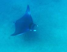De azt hiszem, nagyon szeretünk merülni. Kellemetlen élmények ide vagy oda, hosszú gyaloglás ide vagy oda, másnap újból a vízben voltunk. Volt haletetés is, és minden más, amit az előző két merülés alatt láttunk. Aztán a merülés végén, egészen sekély vízben a merülésvezető, aki a korábbi merülés után sorolta hibáinkat, ami miatt szétesett a társaság (bár ebben szerintünk az ő felelőssége sem volt elhanyagolható), most egészen elképesztő tempóban kezdett el úszni egy irányba, ügyet sem vetve csoportjára. Alig tudtuk követni, de követtük, mert bíztunk benne, hogy valami nagy-nagy dolgot lát. Végre a kissé opálos vízben nekem is feltűnt valami nagyobb élőlény. Rája az, igen, egy rája... Méghozzá nagyobbacska. És úgy mozog, mint ha repülne. Mint egy... manta?!? Manta, te jó ég! Jó pár másodpercig úszott a közelünkben, aztán eltűnt, de a rossz látótávolságban esélyem nem volt fotózni. Fotósellenes vezetőnk a víz alatt fogta a fejét, amikor mutattam, ebből bizony nem lett kép.