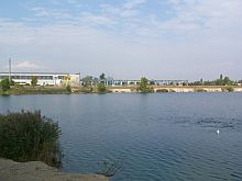 Az elég nagynank tűnő tó egy régi gyár mellett fekszik, ami szerintem már nem működik, mert elhagyatottnak nézett ki, mozgás sem volt. A tó túloldalán vasút halad.
