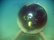 Mivel hétköznap keltünk útra, gondoltam nem lesz rajtunk kívül egy lélek sem, de jó nagyot tévedtem. Aznap épp a szlovák hadsereg búvárai tartottak gyakorlatot a tónál. Rendesen, ahogy a nagykönyvben meg van írva, megfelelő létszámú katonai búvár nagy katonai teherkocsikkal, gumicsónakkal, sátrakkal meg minden mással, ami csak kell. Arra gondoltam, nem is baj, legalább ilyet is látok- elég jó cuccaik voltak a kollégáknak. Ám mire odaértünk ők már jöttek is ki a vízből, elhúztak előttünk, köszöntünk nekik, ők visszaköszöntek, és ennyi is volt a találkozásunk. Pedig ekkor még csak reggel 10 óra volt. Elég hamar befejezték a napot... Mire mi vízbe mentünk ők már majdnem odébb is álltak. De hát merülni mentünk, ezért pár szót ejtek a tóról. A vízbemenetel egy kicsit érdekesebb a szokásosnál, mert nagyjából 2 méter magasról kell egy viszonylag vékony részen lemenni a vízhez. Persze a cuccot előre lehordva ez nem igazán jelent gondot, kifelé inkább- de ott meg a többiek segítenek. (A búvárkodás társas sport...)