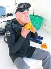 Ray McAllister alighanem az egyik legidősebb aktív búvár: 84 évesen a víz alatt tartott szülinapi bulit.