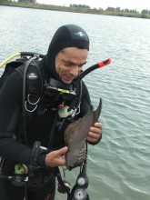 Azért a merülésnek vannak tanulságai. Nem feltétlenül ott kellene búvárkodni, ahol a szivattyú még alig hagyta abba a munkát. Kellene egy lefektetett kötél, hogy egy vonal mentén lehessen végig úszni. Ne mindenki arra menjen, amerre éppen téved. Kölcsön reduktort kellene használni, mert az oktopuszomban víz helyett homok van és ereszti a levegőt. Ha az ürítő gombot piszkálom hátborsództatóan csikorog. Finom gulyással próbálnak vigasztalni a rendezők, de persze nem sikerül. A kezem teljesen tönkre ment, a körömágyam több helyen beszakadt, a körmeim csupa karcolás, még napokig fáj.