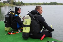 Nem az első alkalommal járok már UEF napon, és most sem kellett csalódnom, hiszen a kicsit csípős, esőre álló idő ellenére összejött pár tucat ember, a bátrabbak még merültek is. Kiváló pörkölttel kínáltak, megbeszéltünk pár aktuális hírt, de volt lehetőség felszerelés próbára is. Szóval a szokásos kötetlen program várt ránk. Amikor Nagy Sándorral előzetesen egyeztettünk, és állította, a bázis adottságai miatt akár esőben is érdemes kimenni, kíváncsi lettem. Aztán szétnézve kiderült, hogy kicsit sem túlzott.Egy szó mint száz, a szalkszentmártoni búvárbázis komolyan meglepett, és ennek apropóján elbeszélgettem Gurisatti Róberttel is. A bázist a dunaújvárosi DVCSE-UBSE üzemelteti, gyakran edzenek itt az egyesület tájékozódási búvárai, sőt, jövőre világkupa versenyt is rendeznek itt. Robi elmondása szerint nagyjából három éve épül, szépül a bázis, jelenleg egy nagy alapterületű faház áll itt, hatalmas, 40-50 embert kényelmesen befogadó terasszal, tárolóhelyiségekkel, konyhával, melegvizes zuhannyal, kulturált mellékhelyiségekkel, sőt, szobákkal. Az ápolt gyepen, ami a bázist körülveszi, akár sátorozni is lehet. Van lehetőség felszerelésbérlésre, palacktöltésre is. A napi belépő a tó mellé 300 forint, a bázishasználati díj búvároknak 1000 forint 2008-ban. Nagy-nagy pozitívum, hogy a szerelésre nagy, burkolt terület áll a rendelkezésre, és a parkolás is jól megoldott.