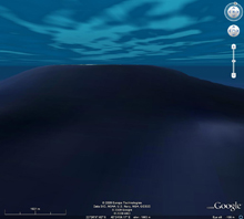Na de nézzük a tengerekről szóló újításokat. Egy ideje már a távolabbi nézetnél a tenger nem kék maszat, hanem látszódtak a hátságok, szerintem ez most talán még szebb és részletesebb lett, de lehet csak a memóriám csal. Egy biztos, nagyon jól néz ki a földünk így, láthatóak a vizek mélyén húzódó hátságok, síkságok. Szóval látványos, főleg ha az ember letölti hozzá a Global Cloud Map felszínt is. Igazi kis ékszer, nem ártana jobban vigyáznunk rá- és ezt nem a programra értem...Lássuk akkor a víz alatti újítást, először keresgettem gombot, kapcsolót mint például az éjszakai égbolt bekapcsolásánál, de nem találtam. Végül kiderült a turpisság, bizonyos helyeken (hogy megleljük hol igen és hol nem az kizárólag a szerencsénken múlik) ha megdöntjük a nézőpontot láthatjuk a víz alatti topográfiát. Én az USA környékén kezdtem, ott leltem olyan területet, ahol megvolt a víz alatti domborzat is. Különösebb katartikus élményre azért ne számoljunk, érdekes de ennyi. Elég bosszantó, hogy nem jelöli hol lehet ilyesmit találni (én legalábbis nem találtam), tehát vadászni kell, ami eléggé elveszi az ember kedvét az egésztől. Hogy ne kelljen keresgetni, itt egy működő koordináta (lat=-22.308207, lon=40.361948). Segítség lehet, ha a térkép készítőnél a NOAA ott szerepel, bár nem garancia tapasztalatom szerint.