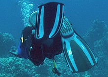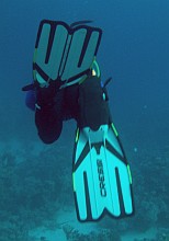 Úgy adódott, hogy volt lehetőségem egy szintén hagyományos, nem hasított, ám jóval lágyabb uszony kipróbálására is. Az Oceanic Viper Ice jól kinéző, feltűnően könnyű darab. Már érzésre is lágy a műanyag és gumi kombinációjából álló penge, a lábrész pedig kényelmes, szintén lágy műanyag. A csat és a pánt hagyományos, de a csat műanyaga gyenge, szerintem nem bír túl sokat- mindenképpen érdemes lehet tartalékot vinni. Úszás közben a gumi lábrész kifejezetten kényelmes és jól tart, a lágy uszonnyal pedig nem különösebben fárasztó a haladás. Együtt jár ezzel, hogy lágysága miatt sebességi rekordot senki nem dönthet vele. Megfelel krallozni, békázni is lehet vele, a forgásban kijezetten gyors, tolatásban pedig átlagos. A Viper áramlással szemben közepesen teljesít- gyorsabban tempózva, krallozva hozható ki belőle a legtöbb ilyen helyzetben. Összességében minden tipikus merülési helyzetben megfelelőnek bizonyult. Viszont a lábrész nedvesen kicsit csúszós lehet, óvatosan kell vele mozogni, ezt elsősorban a búvárhajó uszonyos létráján állva éreztem. Mindenesetre az átlagos, könnyed vörös-tengeri merüléseken biztosan megfelel szinte mindenkinek ez az uszony.