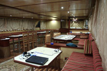 A fél hajónyi hatalmas szalonban mindenkit kényelmes székek várnak az étkezéshez, valamint ülőgarnitúrák az ejtőzéshez, TV nézéshez.