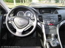 Minden irányba mechanikusan állítható, vezetőnek deréktámasszal szolgáló fűthető üléseket találunk, ez utóbbi jól jöhet télen, amikor a hideg utastér lassan melegszik. Ezen segíthet a napfénytetőn beáramló napfény is, ami motorosan nyílik, az árnyékolója viszont kézzel mozgatandó. Éjszaka jól jön a xenon fényszóró, megszokott extra a kétzónás digitklíma, és a már-már honda védjegy kényelmes bőrözött kormánykerék, amiről vezérelhető hat lemezet mp3 kompatibilis audió, és a tempomatot, ami tartani tudja csupán a sebességet, limitálni nem. Nem hiányzott a fényérzékelős visszapillantó tükör és az esőérzékelős ablaktörlő sem, és ennél a hosszúságnál különösen jól jött az elől-hátul érzékelő radar, tehát alapvetően minden fontos extra fellelhető a legmagasabb executive felszereltségben.