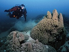 A technológia változása pedig az eljárások változását is magával hozta. Amióta áttértek arra, hogy nem szalagra, hanem merevlemezre rögzítik a merülések során a kamerák képét, könnyebben és gyorsabban elemezhető ki minden, amit a másnapi munka folyamán már figyelembe is lehet venni. Az igazi fejlődés persze azon lesz majd lemérhető, hogy más helyeken mennyire lesz majd gördülékeny a folyamat. A kutatók pedig addig is keresik a választ a Pavilion-tó titkára. A furcsa alakzatok ugyanis sekélyen és nagyobb mélységben is előfordulnak, de az egyes helyeken más és más formák a jellemzőek. A tóban viszont nem találtak semmi különöset, a vízben oldott anyagok mennyisége más tavakéhoz hasonló, halak élnek benne, ugyanúgy járnak a helyiek a tópartra, mint máshol. A felszín alatt ehhez képest ott vannak az akár több méteres mészkő építmények, és a jelekből úgy tűnik, hogy a folyamat napjainkban is tart, mert a pár évtizede a tóba került szeméten is lerakódott a kalcium-karbonát. Mindenesetre most több irányból is vizsgálják a jelenséget- próbálnak valami különlegességet keresni a víz összetételében, máshol nem előforduló baktériumok után kutatnak, de a vizsgálati eredmények egyelőre nem egyértelműek. Az is zavarba ejtő, hogy a körzet más tavaiban nem figyelhető meg hasonló jelenség.