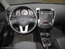 Felszereltségében digitális kétzónás klíma, átlagos USB csatlakozós HIFI mellett tempomat és ülésfűtés, bőrözött kényelmes kormány valamint a fényre sötétedő visszapillantó tükör említhető meg. Nem elemjük ki külön a már elvárható elektronikus biztonsági felszereléseket (ABS, ESP), a hat légzsákot és a mára már szerencsére szintén elvárható 5 csillagos NCAP törésteszt eredményt. Viszont még mindig ritkaság a 7 év teljeskörű Cee´d, és 12 év átrozsdásodási garancia.