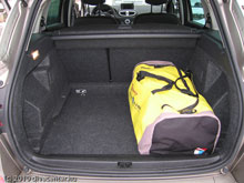 Tesztünk kelléke a szokásos: közepes méretű búvártáska, amelyet megnézzük, hogyan és hány férne el belőle. A csomagtér űrtartalma 439 liter, ami már nem kisautós, több tesztelt jármű rendelkezett ilyesmi mérettel, sőt. Mivel kombi, a kialakítása is ideális, őszintén szólva meg is lepett, ugyanis a búvártáska kis noszogatással hosszában is elfért. Egymás mellett kettőnek kényelmesen van hely, és akkor felfele még lehet terjeszkedni, hiszen ki van képezve hely akár rácsnak, hálónak is a hátsó ülések mögött. Nincs mese, három búvártáska simán befér, talán még négy is. Döbbenet. A csomagtér padlólemeze kétszintes, ha bent hagyjuk a hátsó üléseket ledöntve sík felülethez jutunk, ha kivesszük, kapunk további kézélnyi magasságot és ezzel persze jópár liter plusz űrtartalmat. Sajnos 12 voltos csatlakozó már nem jutott hátra, de ne legyünk tellhetetlenek, a csomagtér ajtaja viszont jól véd az eső elől és be is ülhetünk hátra öltözni.