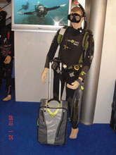 Neoprén ruha gyártó kövér búvároknak? És tényleg: remekbe szabott pocakos nedves ruhák tömkelege sorakozik mindenhol. -Ez a biznisz !- kiállt fel barátom és igaza van: úgy viszik a cuccot, hogy öröm nézni. Végre valaki, aki a 100 kiló felettiekre is gondol és nemcsak az "angolna" kinézetű búvárokra. A következő soron ismét érdekességgel találkozunk: égetett porcelán boros üveg mely búvárpalackot formáz, uszony formájú kínáló tálca, palack talpat mintázó csésze; érdekes és látványos ötlet.