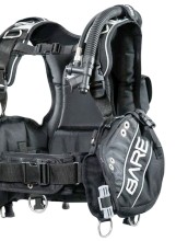A Bare Black Jack mellény volt az egyik termék, amit sikerült merülés közben is tesztelni. Manapság a sportbúvároknak szánt mellények vagy nagyon könnyűek és vékony anyagból készültek a repülős utakhoz, vagy pedig nagyon strapabíró, mindenféle felhasználásra alkalmas, robosztus felszerelések. A Black Jack az utóbbiak közé sorolható: természetesen annyira nem nehéz, hogy elképzelhetetlen lenne a repülős szállítása, de az látszik, a tervezők nem kötöttek kompromisszumot a tartósság terén. A hagyományos kialakítású, tehát nem hibrid mellény anyaga ezres cordura, ezzel sok-sok évig megbízhatóan fogja szolgálni gazdáját. Már első látásra is feltűnt, hogy minden egyes D-gyűrű fémből készült, tehát bármit elbírnak, csak éppen a tulajnak is bírni kell a tömeget. A háttámla feltűnően jól ki van párnázva, a hevederek kialakítása is követi a test formáját, tehát kényelmes mellényről van szó. Manapság szinte mindenki a súlyintegrált mellényeket keresi, és a Black Jack is sok ólmot tud cipelni. Pontosabban: nagyon sokat. A két, nagyméretű, csattal (tehát mechanikusan, biztonságosan) rögzített oldalsó súlyzseb 6-6 kilót bír el, oldásuk is jól van megoldva. Hátul a palack mellett két kisebb, 2-2 kilóra méretezett súlyzseb is van, tehát összesen 16 kilóról beszélünk, amit most, a tavaszi szárazruhás merülések során ki is tudtunk használni. A mellényen még van két nagyobb, cipzáras, jól elérhető zseb, illetve két kicsi, egyéb tárgyak tárolására szolgáló rekesz is. Az inflátor hagyományos, de erősnek tűnő szerkezet. A vállszelep leeresztője természetesen előre van vezetve, és a mellény aljára is került leeresztő szelep. Az oktopusztartó rögzítését más mellényeken jellemzően a zseb felső részénél levő D-gyűrű használatával oldjuk meg, ezt ezen a mellényen nem találtuk.