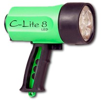 Manapság szinte mindenki a LED technológiájú búvárlámpákat részesíti előnyben. Nagy fényerő, hosszú használati idő- gyakorlatilag csak előnyei vannak. Az Ikelite a kategória egyik legnevesebb gyártója, és ezért kíváncsian vettük kézbe a C-Lite 8 modellt. A több színben kapható, igényesen kialakított burkolathoz egy markolat csatlakozik, aminek köszönhetően kifejezetten praktikus a víz alatt a lámpa. Három, egyenként 5 wattos LED van a lámpában, ezek együttes fényereje kifejezetten meggyőző, a fénykör nem nagyon nagy, de azon belül egyenletesen erős a világítás. A lámpa 8 darab baby elemmel működik, ami soknak tűnik, cserébe viszont akár két túrát is végig lehet csinálni a lámpával, elemcsere nélkül.