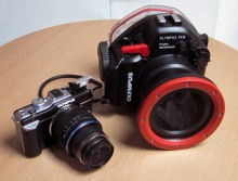 A következő lehetőségként az új micro 4/3 (MFT, Mikro NégyHarmados) gépek közt néztem szét. Az Olympus PEN E-PL1 az egyik kézenfekvő lehetőség. Kicsi, képminősége a kompaktokénál jobb, az objektívek cserélhetőek és nem utolsósorban már víz alatti tok (PT-EP01) is van hozzá. A gép 12,3 megapixelt tud, természetesen van képstabilizátora és számtalan manuális beállítási lehetősége, és az alapgép nagyjából 120,000 forintos ára is szimpatikusnak mondható. Mondjuk tokkal együtt 260-ról beszélhetünk, egy jó alaptulajdonságú, fejleszthető gépért. Természetesen a nagylátó optika és az ahhoz való dómport már sokat dob a gép árán, viszont használhatóak a slave vakuk is hozzá. Nem mellékesen pedig tud videót is rögzíteni, méghozzá 720p HD formátumban. A jó adottság, a kisebb méret és az árnyalatnyival olcsóbb ár miatt bizonyára sok ember gondolkodik el hasonló micro 4/3 gépek vásárlásán, hiszen ott van mondjuk a Panasonic DMC-GF1 is, hasonló paraméterekkel, 10 bar vízhatlan tokkal. Noha természetesen kompromisszumokat kell kötni, mert egy igazi DSLR mégiscsak többre képes, és jóval nagyobb a mozgástér objektívekben is, sok ember találhatja meg ebben a kategóriában az ideális társat.Én viszont még adtam egy esélyt annak, hogy a gondolatban leírt kompakt kategóriában is találjak valami érdekes gépet. El kell ismernünk, a kompaktoknál az ügyesebb fotósok a már most piacon levő technikákkal is tudtak jól makrózni, például az újabb G sorozatú Canon gépekkel. A nagy kérdés mindig az volt, hogy nagylátószögben (azaz inkább mondjuk úgy, a normálnál kicsit nagyobb látószögben, mert halszemről sose beszélhettünk) mire képes egy kompakt. Sokan ügyesen barkácsoltak és nagylátó előtéteket szerkesztettek a tokokra, de az átlag felhasználó szeretné ezt úgy megvenni, hogy besétál a boltba és leveszi a polcról.