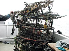 A sziklákba akadva, vagy viharok miatt beszakadó kereskedelmi célú halászhálók és csapdák azután is "teszik a dolgukat", miután a gazdáik már rég lemondtak róluk. Számolatlanul ejtik el az állatokat, és ez manapság már igencsak kritikus problémává vált. A kanadai British Columbiában ennek igazolására a környezetvédelmi minisztérium csapata szonárral vizsgált meg egy 5,5 négyzetkilométeres területet, és nem kevesebb mint 1829 gazdátlan rákcsapdát számoltak össze. Ezek időnként nem valami probléma vagy baleset miatt kerülnek a víz alá, hanem egyszerűen túl rövid kötéllel dobják őket a tengerbe a hajók fedélzetéről.Februárban ezekből a halászati eszközökből 218-at emeltek ki a vízből, és egy hatalmas hálót is eltávolítottak a Pender Island közeléből a búvárok. A 218 rákcsapdát megvizsgálták, 189-et az előírásoknak megfelelő gyorsabban lebomló kötelek erősítettek össze, ezek néhány hónap után szétesnek. Ám addig is megreked bennük néhány állat, most közel száz rákot találtak bennük. És a víz alatt maradó több, mint 1600 csapdának ki tudja mennyi áldozata lehet még. Nem beszélve a többi gazdátlan eszközről, amelyek valahol a víz mélyén sodródnak.