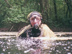 Fiatal emberek öltöztek be fekete ruhába, palackot vettek a hátukra, maszkot a fejükre és valami ketyerét tettek a szájukba. Sötét szerkójuk (biztos védőruha?!) alapján meg voltam győződve, hogy a medencét fogják fertőtleníteni, mert bizonyára valami titkos (félhalálos?!...) baktérium leledzik az uszodavízben. Azon nyomban partra másztam. Egy kiadós tusolás után azonban szembesültem a valósággal. Ez biza´ nem a KÖJÁL Különleges Osztaga volt, nem rovarirtók voltak, sőt, halálos gáztámadás sem volt - egész egyszerűen csak búvárkodtak.