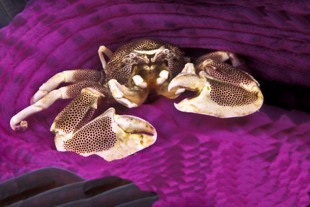 1.- Kicsit alulról fotózva, a rák ollók félelmetesek/dinamikusak tudnak lenni és a részletek, ha fekete a háttér szépen kijönnek. A kép talán legnagyobb értéke a szörők gyönyörű megjelenítése.