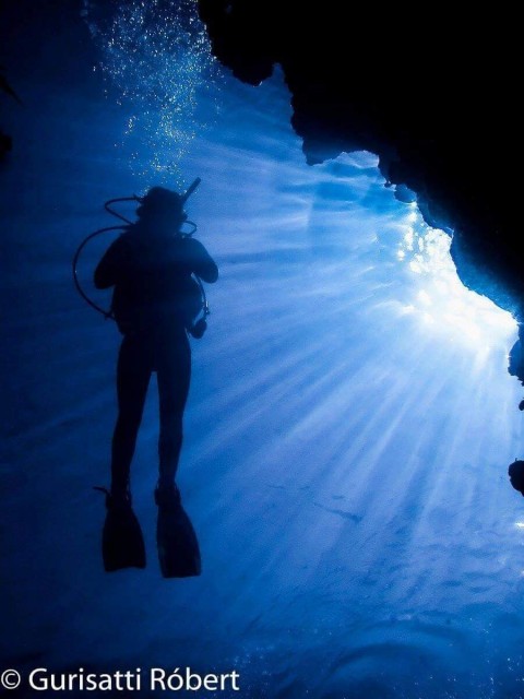 Szép hangulatos felvétel, nekem még az ff választás is bejön. A buborék sokat dob a képen, látszik hogy úszik a búvár, dinamikát is ad a képnek, illetve segíti megjeleníteni a merülés hangulatát. Nem eget rengető téma, nem eget rengető megoldás, de teljesen korrekt kis kép. Persze ha egy delfinnel játszana modell a víz alatt, akkor bitang lenne! :-)