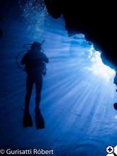 Fentről fotózni veszélyes! Már kritikailag nézve. Könnyen kaphatunk ugyanis rossz kritikát! Most sem értem mi volt a szerző szándéka amikor megnyomta a gombot? Ha már ilyen rossz szögből fotózott, akkor legalább elküldtem volna a búvárokat a jobb felső sarok felé, mert az teljesen üres maradt. Így két legyet ütött volna egy csapásra: eleget tett volna az aranymetszés szabályának és kitelítette volna a képet.