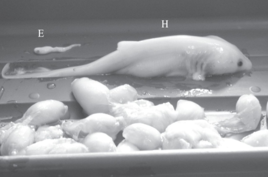 A homoki tigriscápa méhében a legidősebb embrió a fiatalabbakkal táplálkozik.