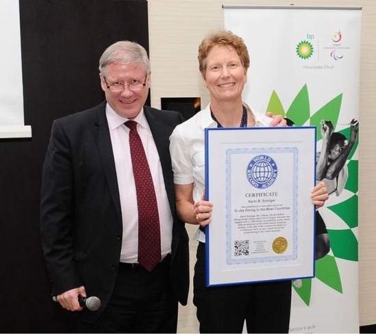 Houston, Texas, Egyesült Államok - Karin Sinniger, (befektető; felfedező; búvár), svájci, amerikai és brit (hongkongi) állampolgár, aki több mint 1500 merülést regisztrált, több mint 180 országban búvárkodott sikeresen, ezzel a WORLD RECORD ACADEMY szerint beállította a legtöbb országban való búvárkodás új világrekordját.