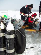 Azt is megtudtam, hogy egy éles helyzetben messze nem mindig ilyen kedvezőek a körülmények. Az egy hete történt csepeli balesetnél, amikor a beszakadt jég alól kellett menteni, a jég a búvárok alatt is beszakadt, de ilyen helyzetben is meg kell kísérelni a segítségnyújtást. Hiába azonban a tűzoltók felkészültsége, az emberi felelőtlenség esetén ők is tehetetlenek, és nem tudnak mindig időben érkezni. Mindenesetre amit lehet, mindig megtesznek, és ha lehetőség van rá, szakítanak időt a gyakorlásra is.