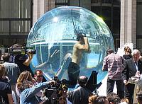A hatalmas akváriumában egy hetet töltő amerikai szabadulóművész az egész program megkoronázásának egy olyan szabadulást tervezett, aminek során a bilincsek nyitásához szükség lett volna a jelenleg érvényben levő statikus időtartam-rekord (8 perc és 58 másodperc) megdöntésére. Ám Blaine nem járt sikerrel, és végül a segítőcsapat búvárai mentették ki szorult helyzetéből.Persze akár így is kalapot lehet emelni előtte, mert ilyen komoly állóképességi próba után 7 perc 8 másodpercet töltött egy levegővel a víz alatt, miközben meg munkát is végzett. Az ehhez hasonló mutatványok terén már tapasztalatot szerzett Blaine korábban már volt élve eltemetve illetve jégtömbbe fagyasztva is, tehát bizonyította, hogy megvan a lelkiereje az ilyesmihez. Jelen mutatványára is sokat készült, többek között a haditengerészet búváraival, de a csúcspontot jelentő feladat előtt már elmondta -ún. fullface búvármaszkján keresztül ugyanis kommunikálni is tudott-, hogy nem érzi igazán jó bőrben magát.