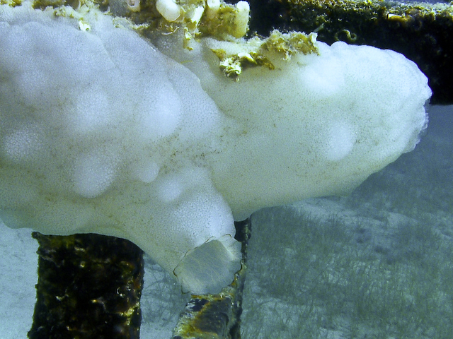 Phallusia mamillataHewlett-Packard HP PhotoSmart R817 (V01.00) f 8 1/100 sec Dudoros zsákállat. Magánosan álló zsákállatfaj, mely max.20 cm-re nő meg.Teste hasas, felfelé álló, vastag kocsonyás köpennyel és számos kerek bütyökkel. enyhén áttetsző, tejfehér színű, a bütykök körül sötét pigmentvonalakkal, melyek kihangsúlyozzák azokat.