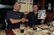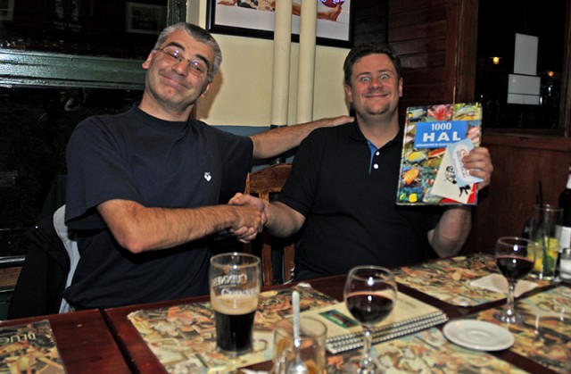 Megtörtént a hivatalos díjátadás Archi barátunknak, aki egy szép, 1000 hal című hasznos könyvvel lett gazdagabb (mégiscsak bután adta volna magát, hogy a saját lámpáját kapja nyereményként, mert ugye ő a szponzora a fotósverseny lámpa nyereményének) Az okos arckifejezések az előttünk álló poharak tartalmának köszönhetőek :) Még egyszer gratulálunk a nyereményhez, és a szép fotóhoz! | ||
